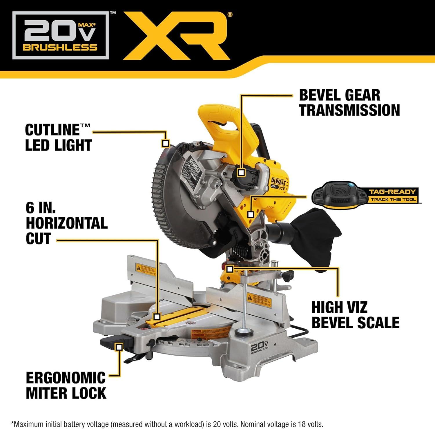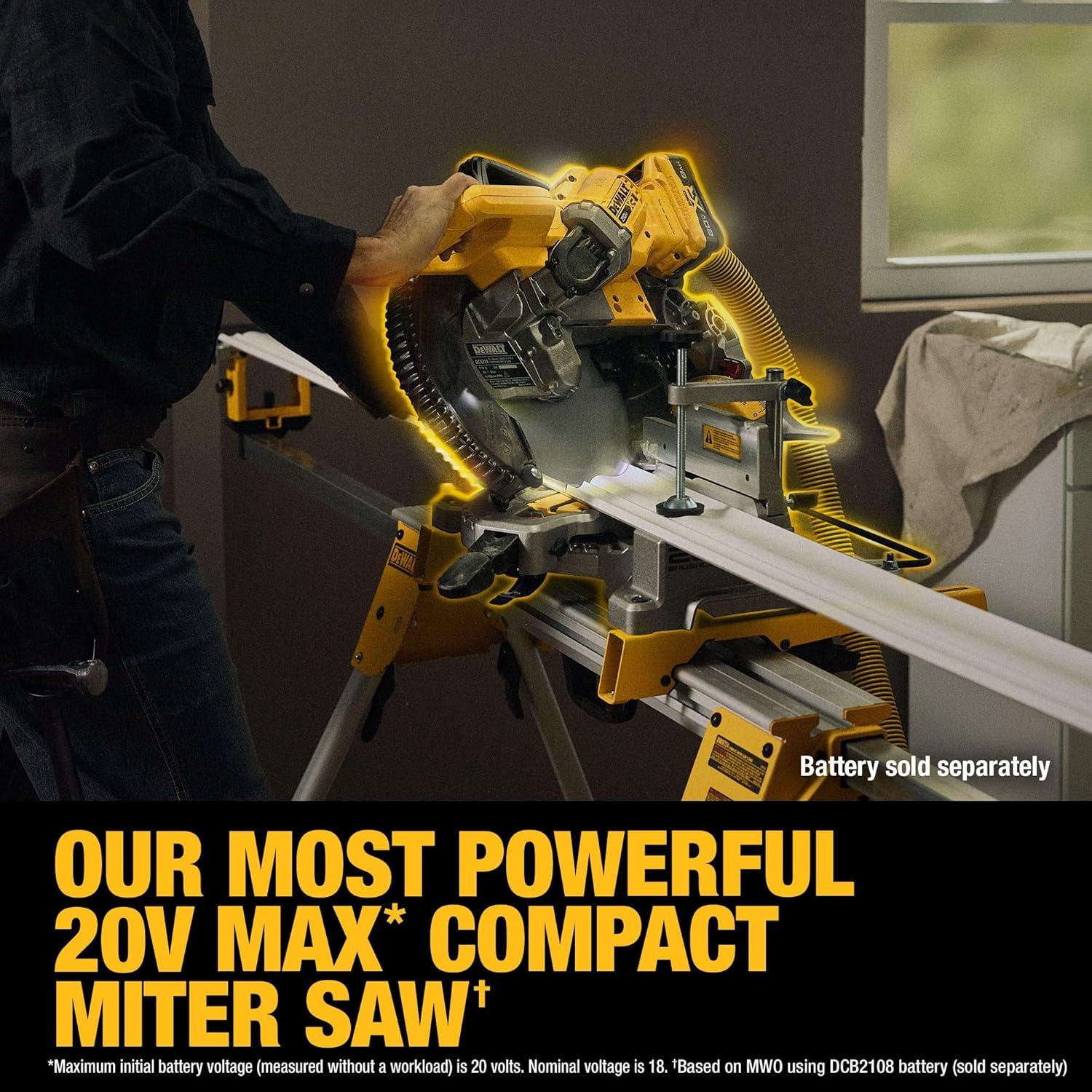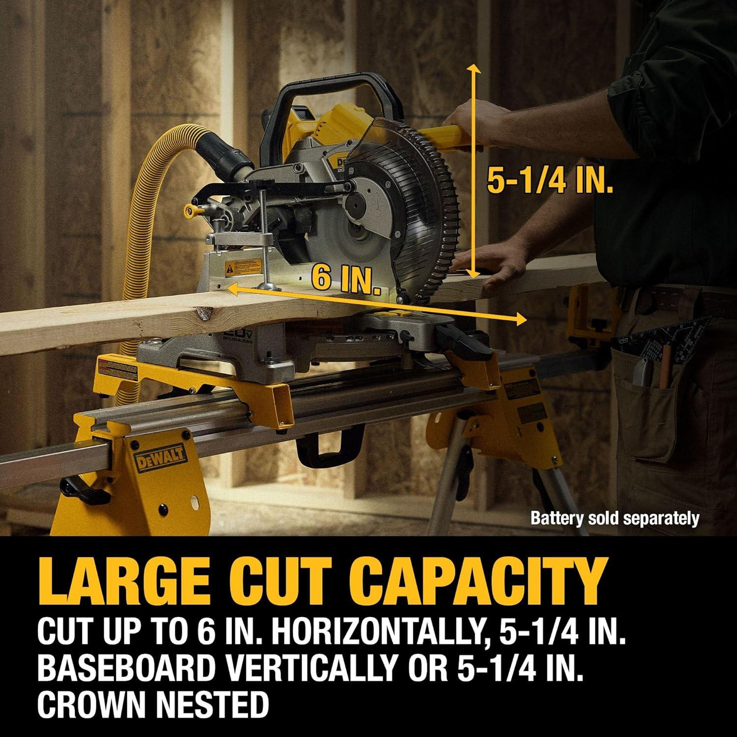 Cordless compatibility – our first 10 in. miter saw compatible with the full range of DEWALT 20V MAX* and DEWALT FLEXVOLT batteries (sold separately).