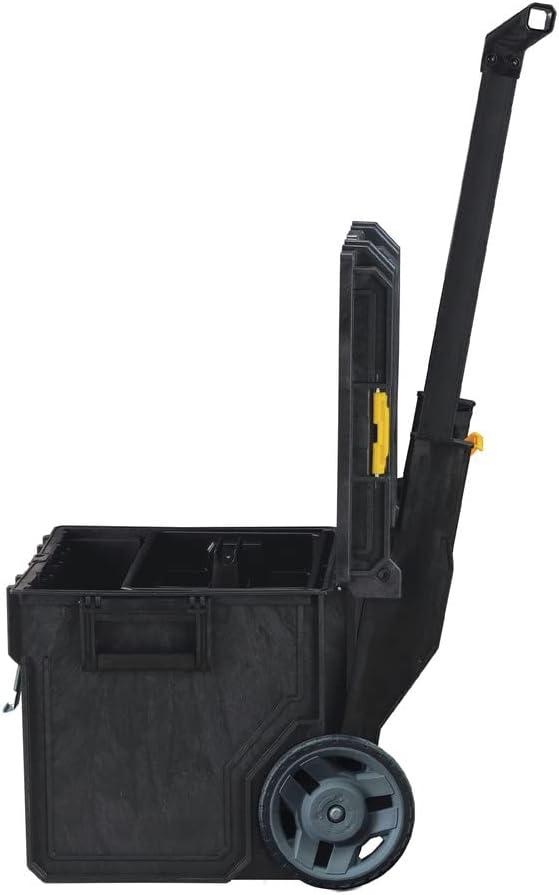 The DEWALT ToughSystem DS450 Mobile Tool Storage Box module offers ultimate mobility and stackability. The telescopic handle and two wheels of DEWALT tool box allow for easy transportation, while its modular design makes it easy to combine with other ToughSystem stackable chests and boxes. This built-to-last unit also features an IP65 integrated water seal to protect your items, making it a perfect choice for rough job site conditions.